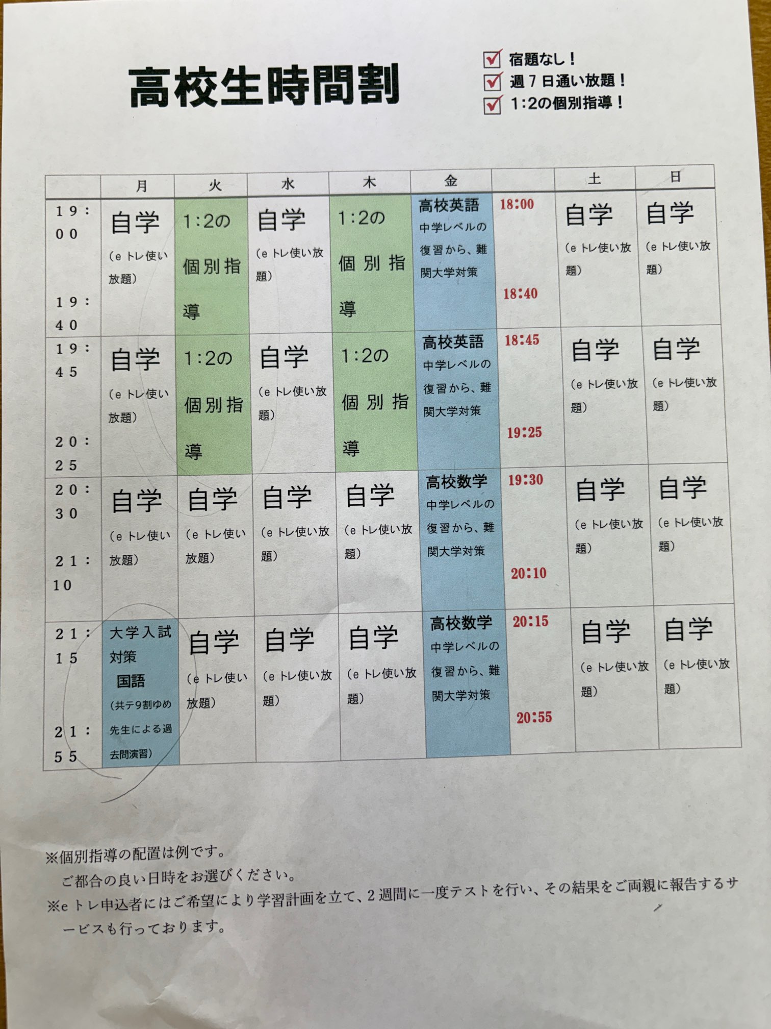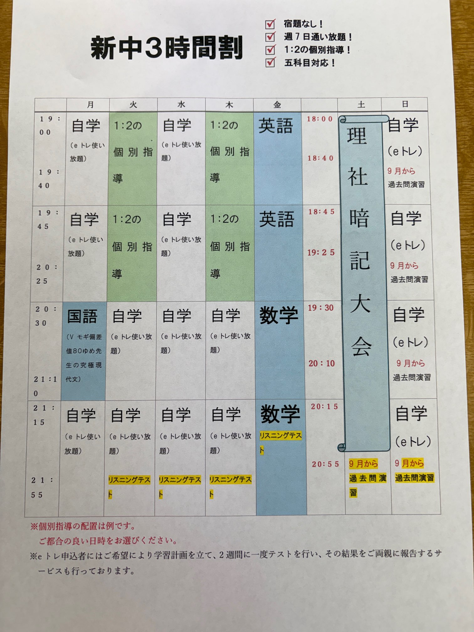 集団授業曜日変更に伴い、個別指導の曜日変更は本人もしくはお父様お母様にご連絡します。