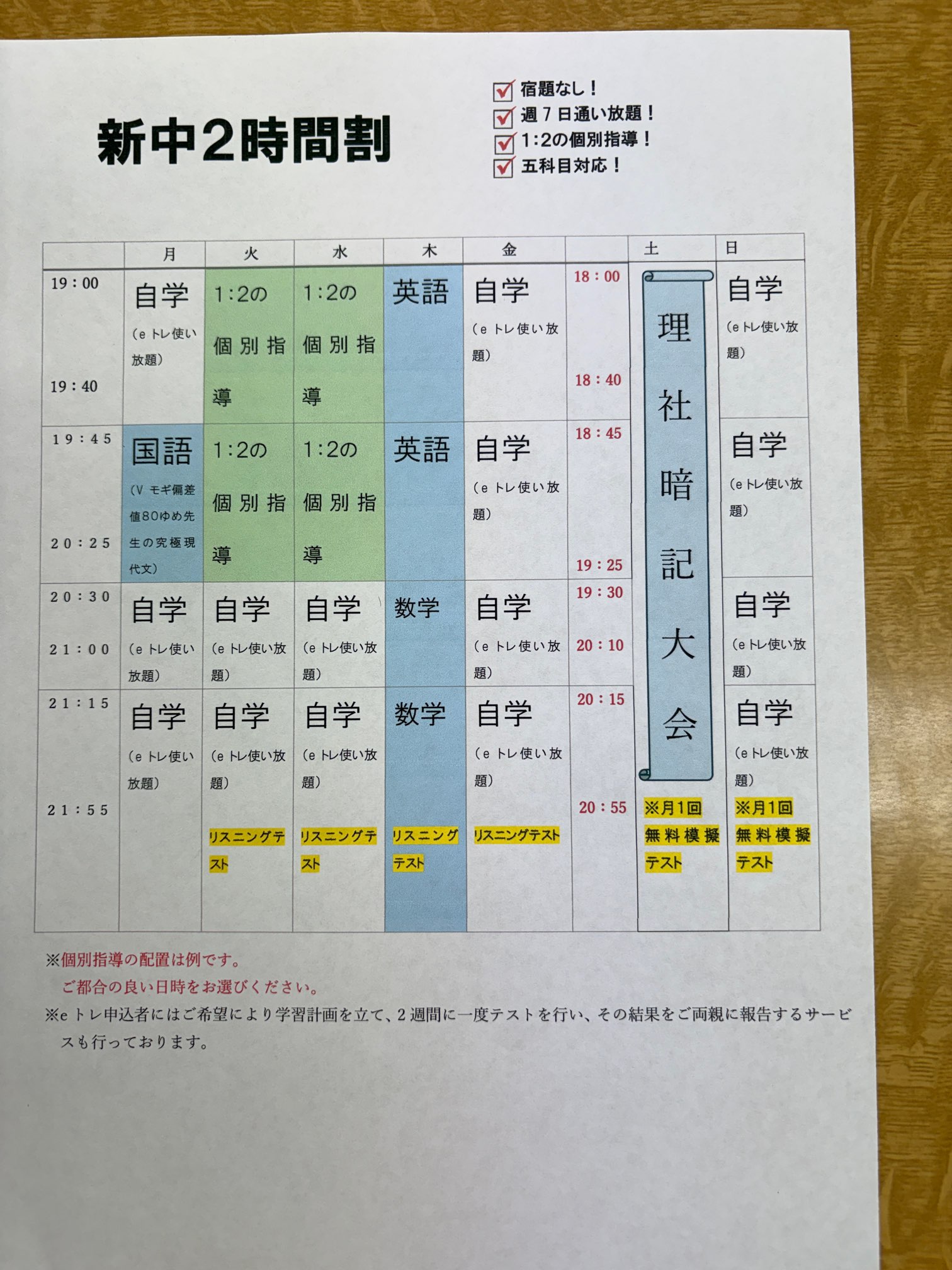 新中学2年生、新中学3年生は、3月から新年度の時間割となります