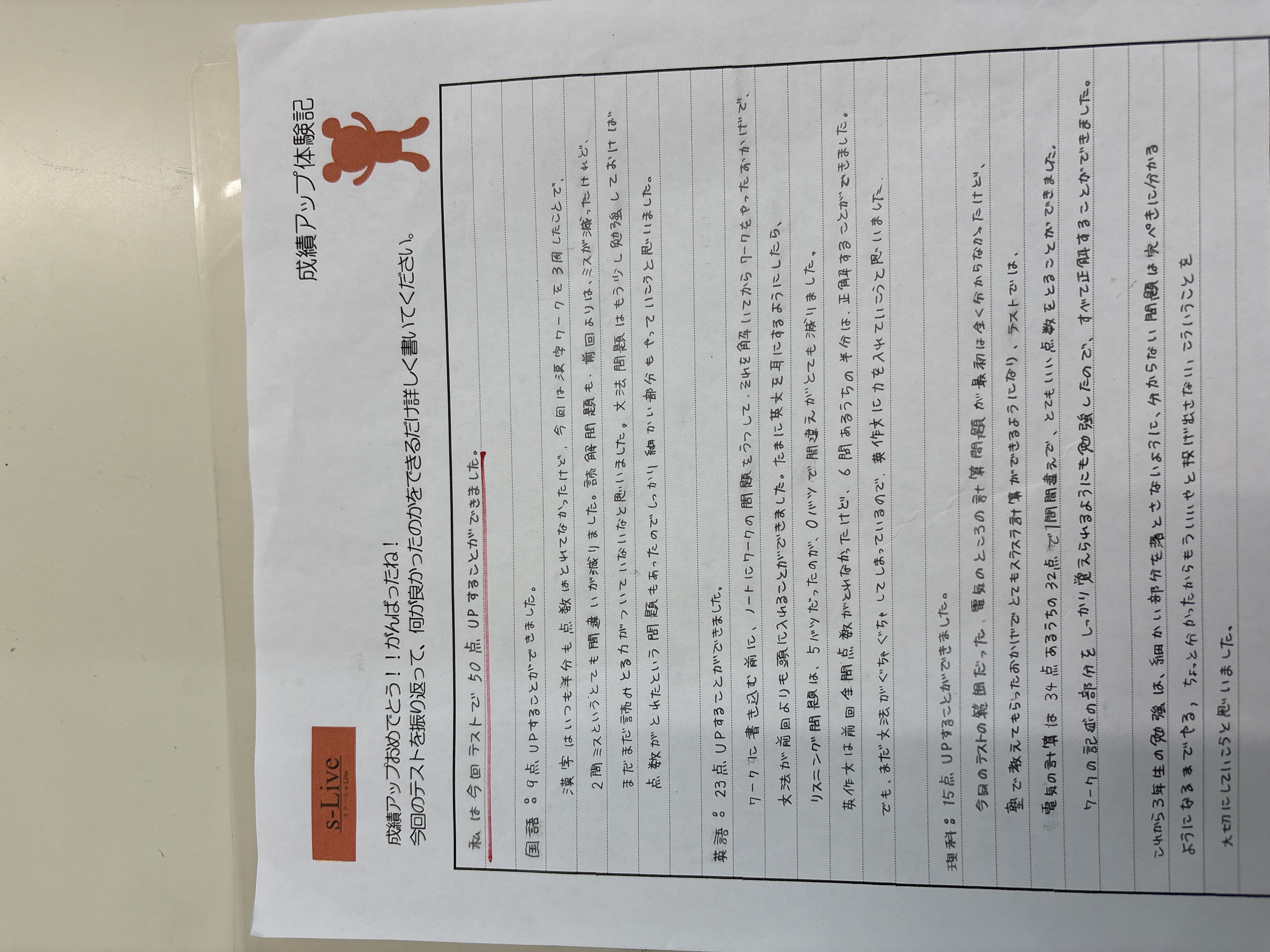 前回のテストからずいぶん時間が経ちましたが、新たな塾長賞です