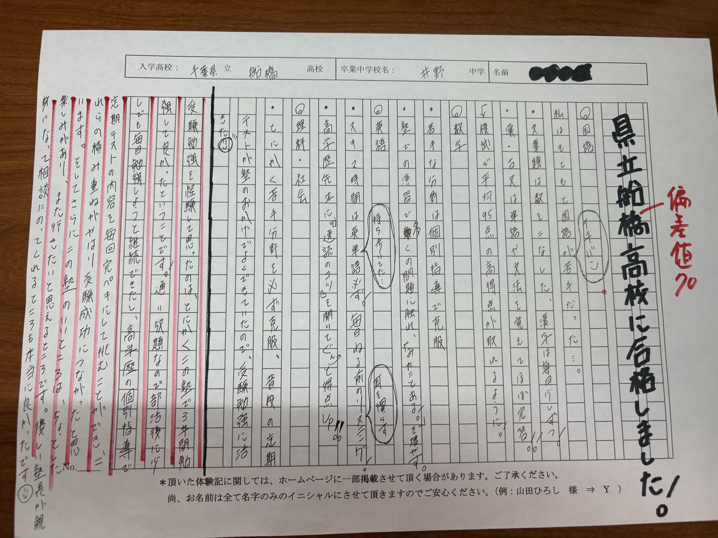 塾のため、ある程度偏差値の高い高校をチョイスしますが、合格者全員が当塾の誇りです。