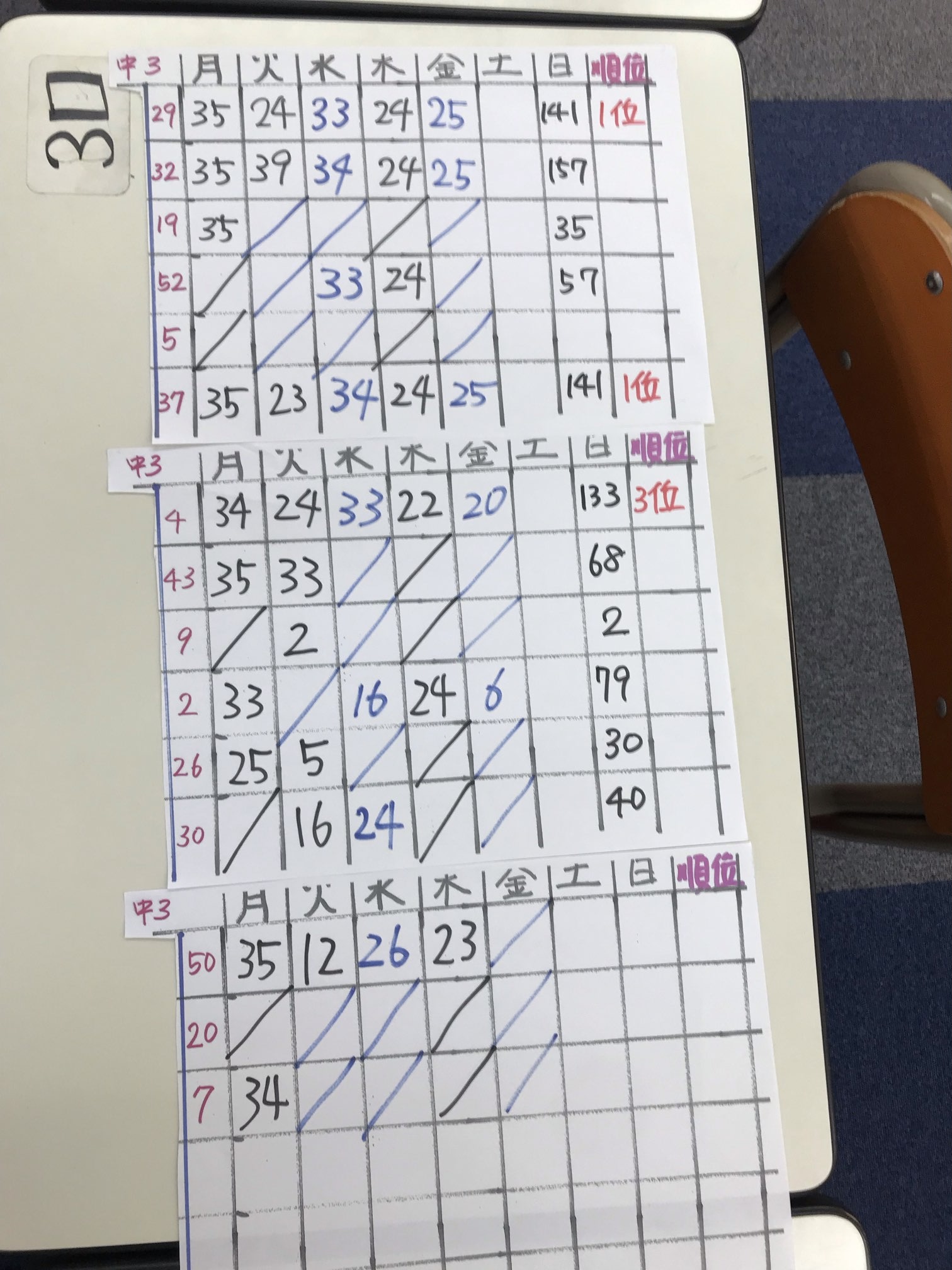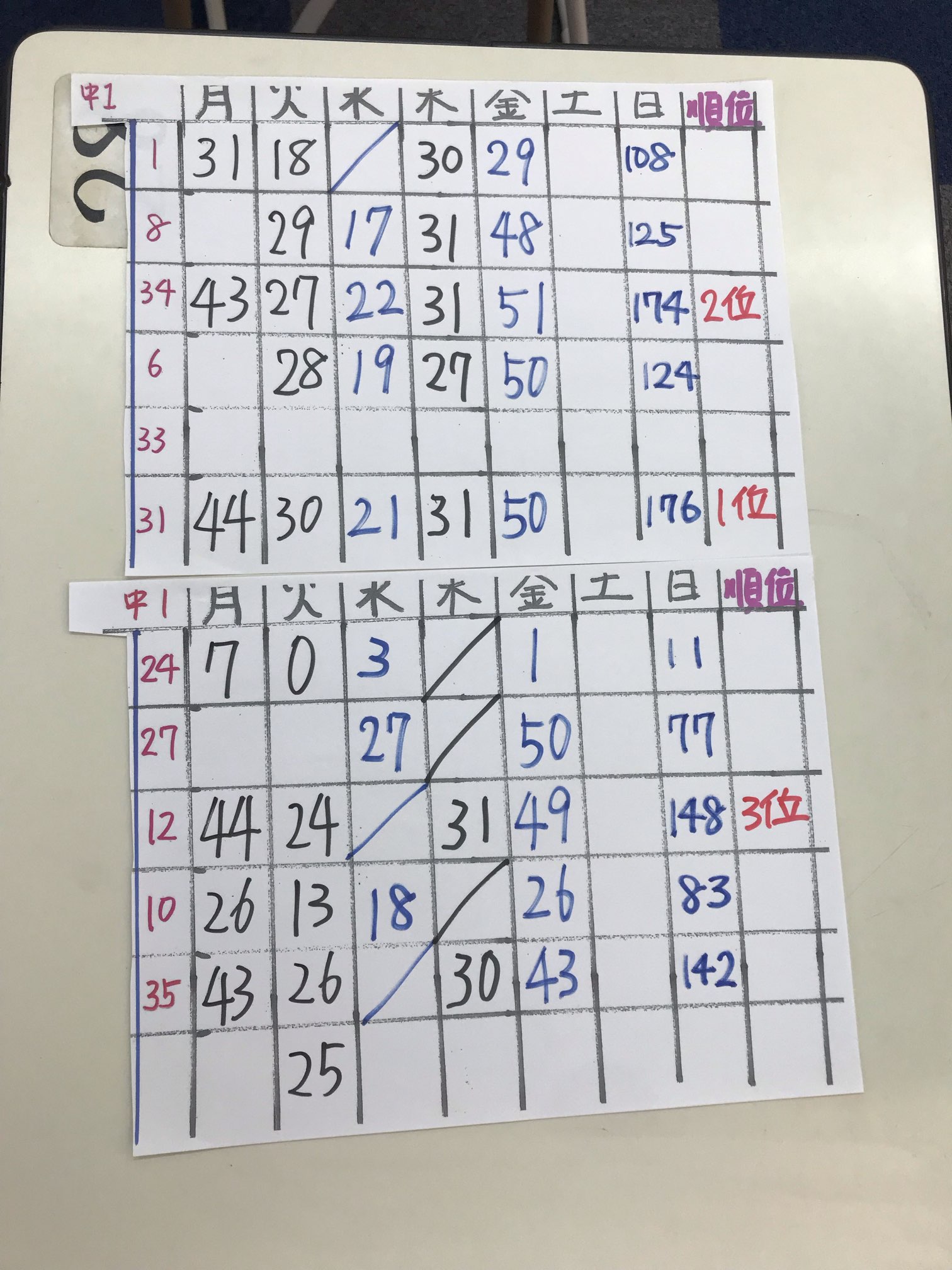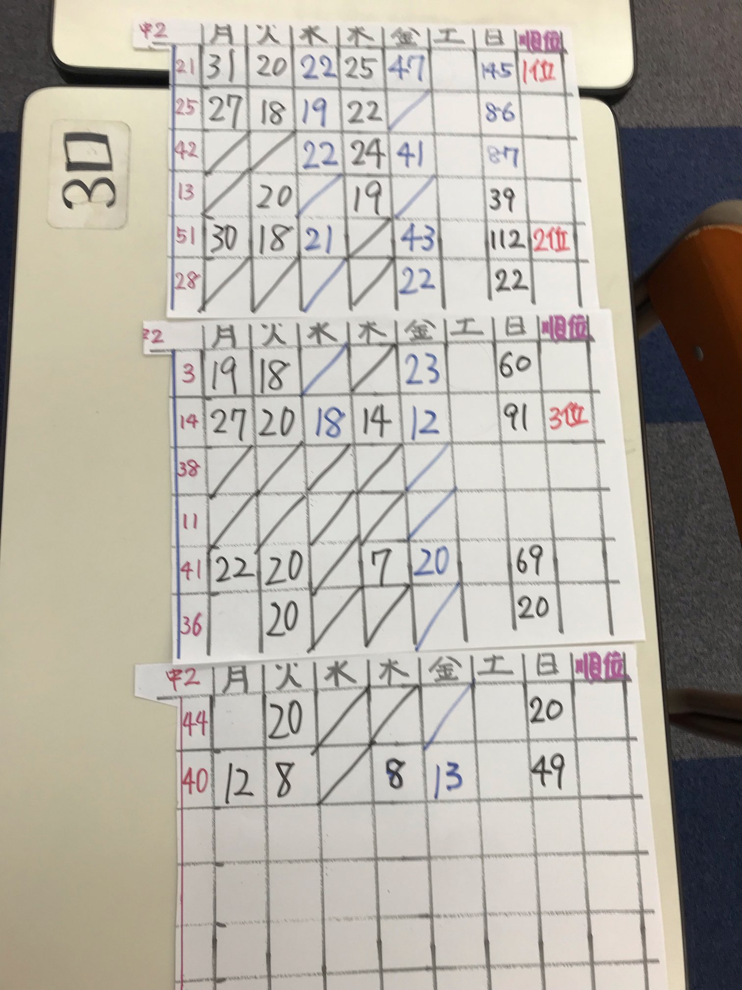 日曜日の数字は合計